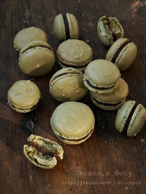 Френски макарони с пълнеж от кестеново сладко и черен шоколадов ганаш