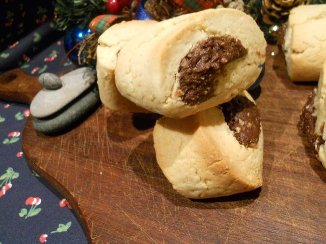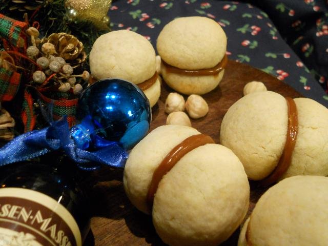 Много обикновени бисквити с пълнеж от шоколад и смлян  лешник. Направих ги за проба , имах ги записани и хайде да ги забъркам, но не е моята бисквита, не е лоша, но предпочитам маслената, но за асортимент става, няма да се хвърлят.  Wink