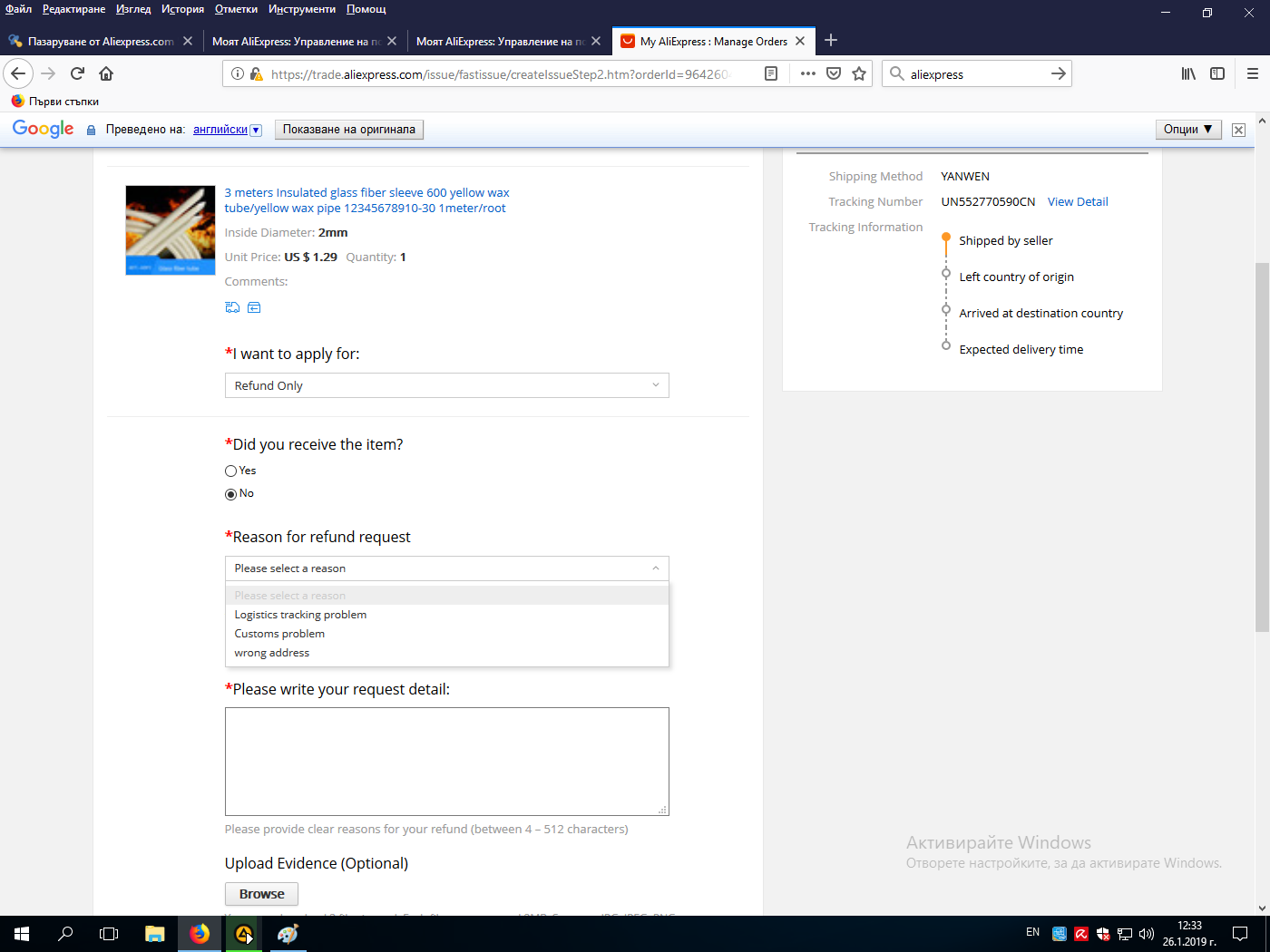 Такова нещо трябва да се види на място. Влязли сте където не разбирате. Или избирате грешна опция доставено/недоставено или пратката е от тези дето докато не минат първите 35 (или 60) дни защите не може да се прави диспут за непристигнала пратка. Пише си всичко викайте някой на място да помага с езика или със сайта.