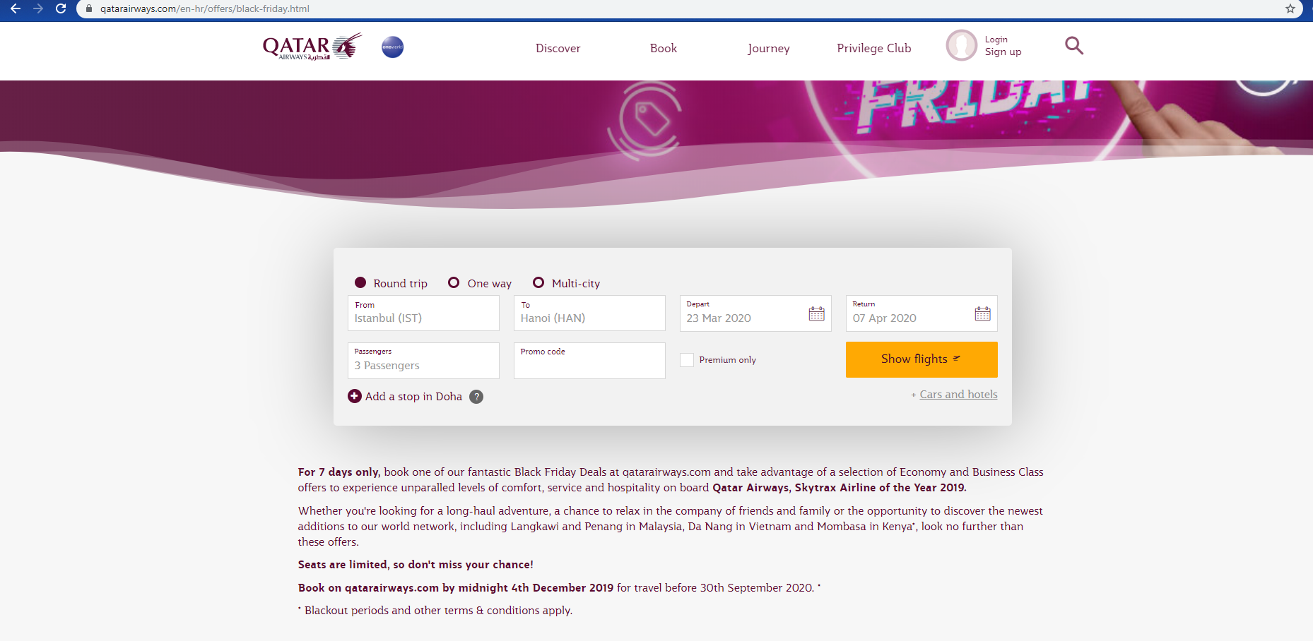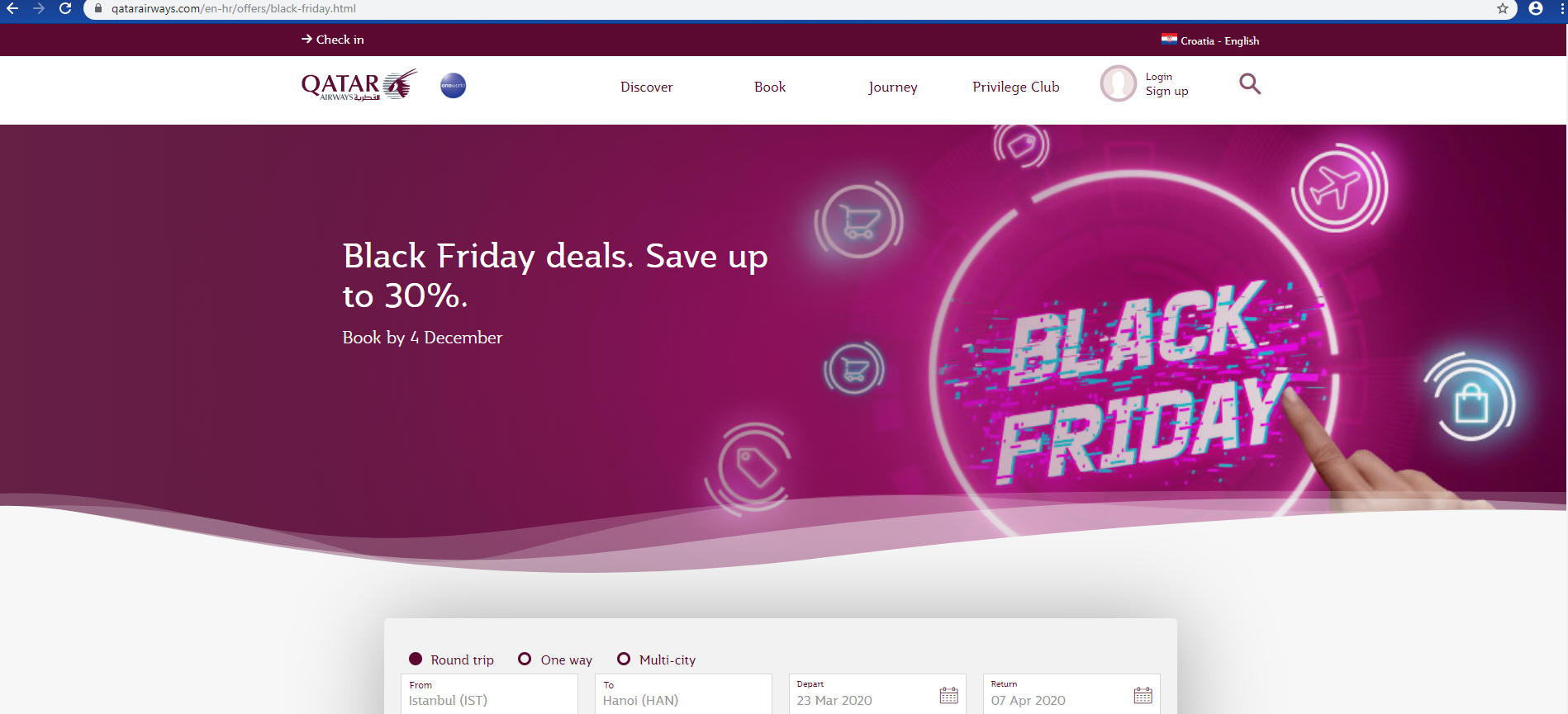 https://www.qatarairways.com/bg-bg/offers/black-friday.html?cid= … 0&heroCTAtext Това е за катарците. Наистина няма кой знае какво. Цените са като от преди два дни, поне по дестинациите, които гледах.