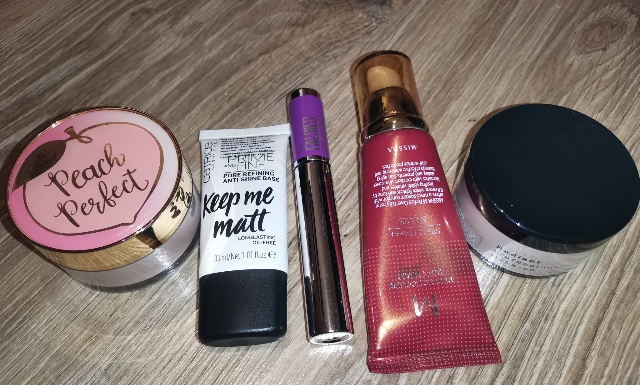Крем Нивеа и Буржоа ФДТ (55 dark beige) са ползвани 2-3пъти, тъмно-червения лак 1 път, розовия 3-4 пъти, спрея Марокан има за 3-4 ползвания.