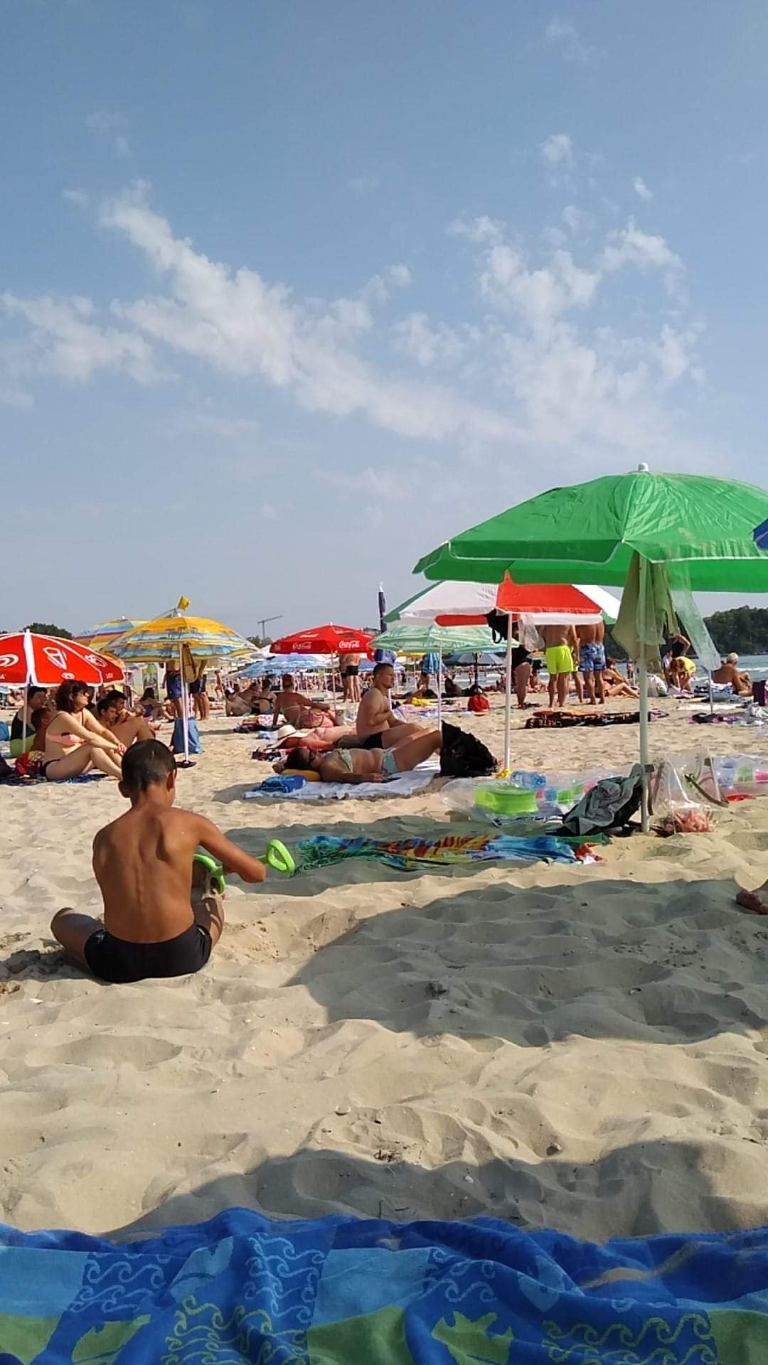Явно се дължи на голямата плажна ивица. Около нас обикновено е празничко... Ние ползваме платени чадъри.