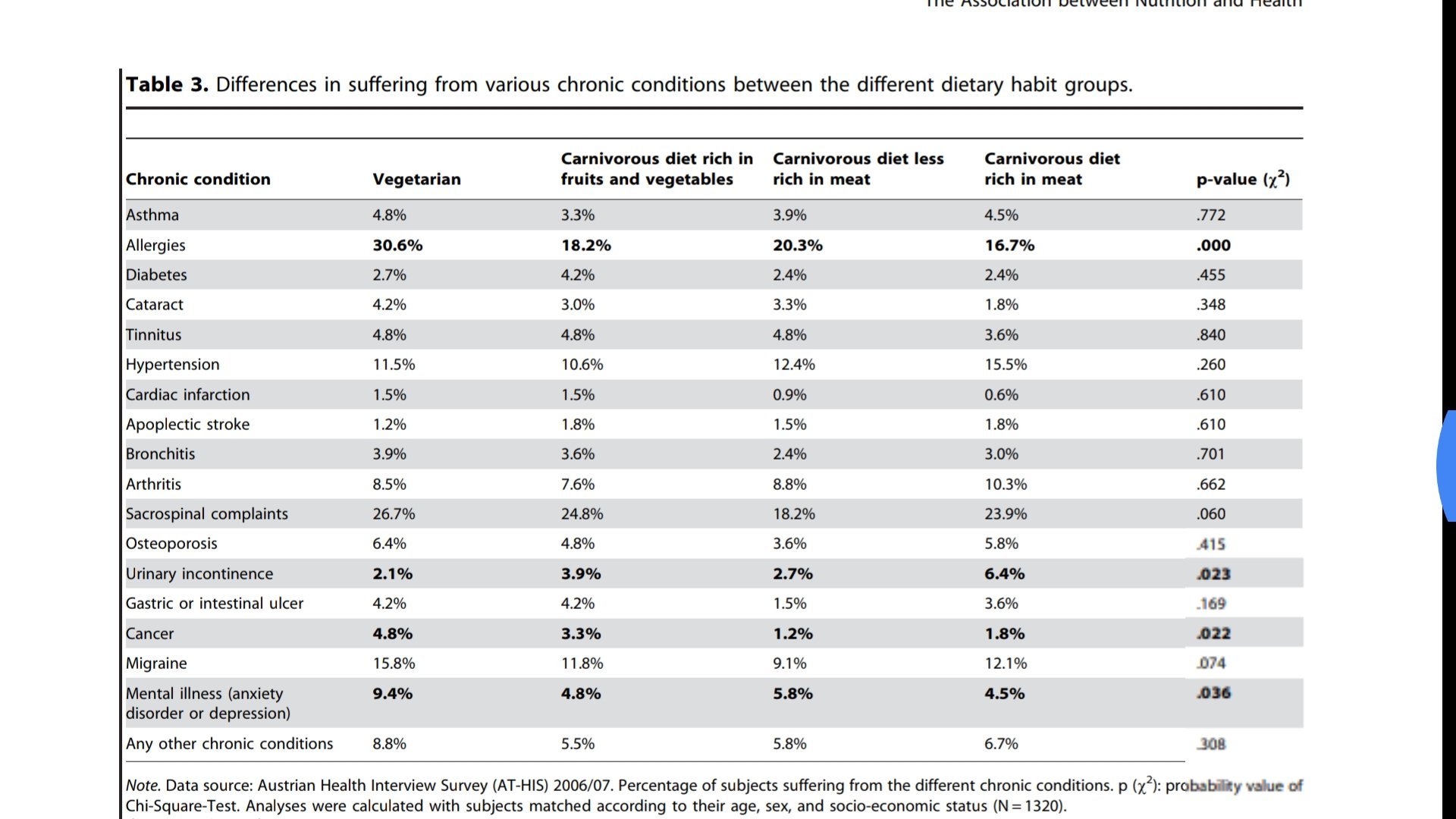 This study also concluded that vegetarians are more often ill, have cancer and heart attacks more often, and have a lower quality of living than meat-eaters.