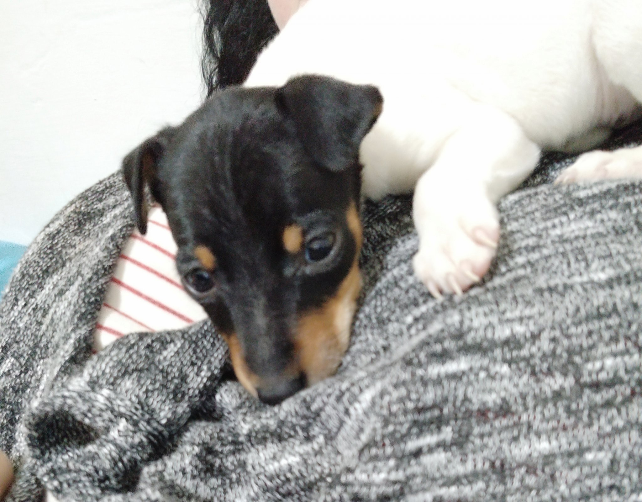 Относно поразиите - Барби е осиновена на 8-9 месеца и когато я прибрах си беше с хигиенни навици, но тъй като седеше по цял ден сама вкъщи трябваше да се разделя със старата си холна гарнитура и един матрак, постоянно късаше нещо като обичаше хартия (като конфети я правеше), изяде един живачен термометър (за щастие без живака, но пак подлудих всички познати ветеринари) и изяде ъглите на масата, но пък след това я направих със заоблени ръбове и стана по-хубава, та явно има вкус детето.  Сега вече е на 6 години и не прави бели, но откакто имаме котка са страшна партия двете и коя, какво прави не знам, но според мен са комбина. Ама тя и Барби си е с бебешкия акъл.