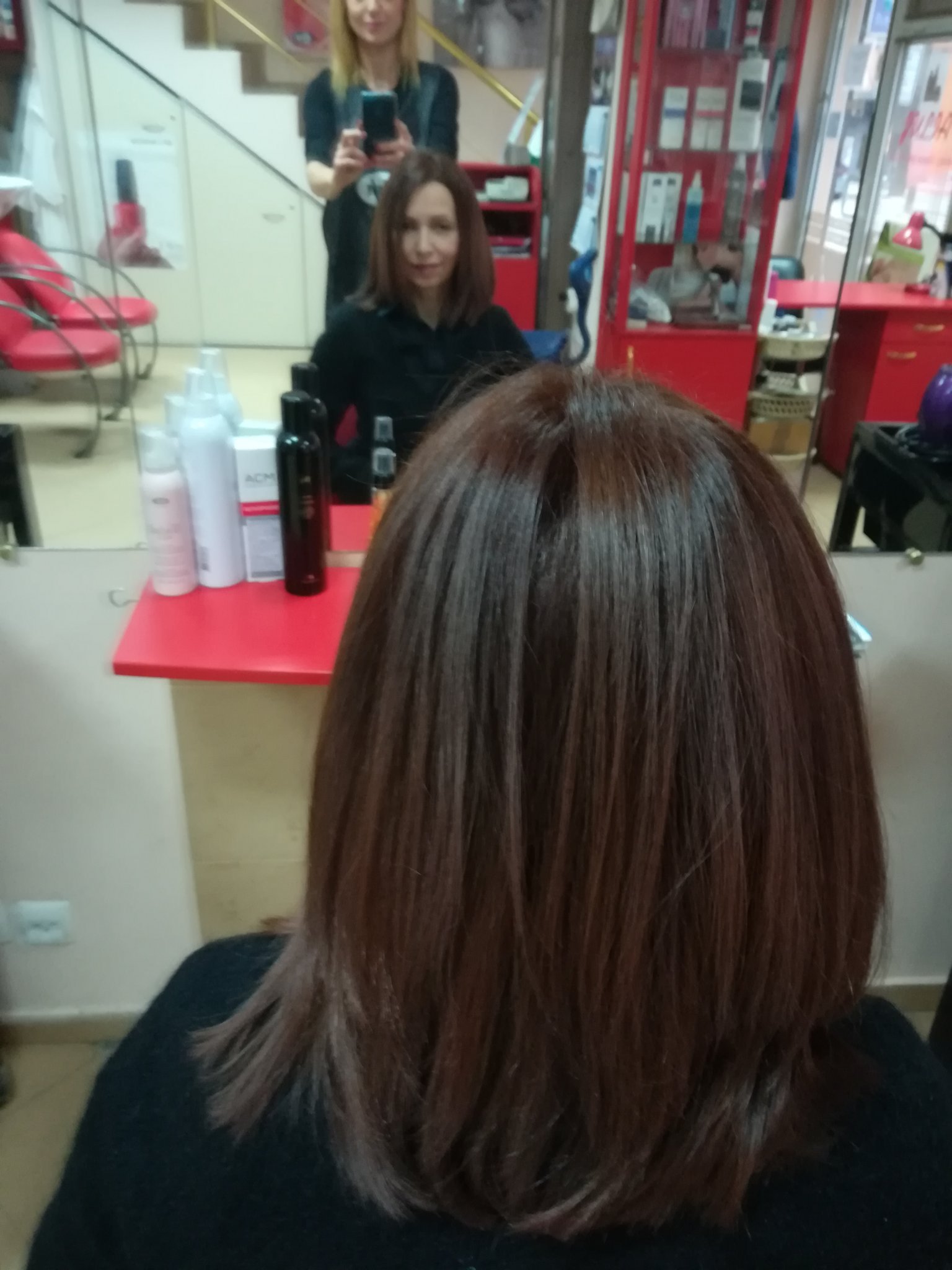 Хубаво е, това като естественият ти цвят ли е? И каква е основата отдолу. Те повечето фризьорки май само кафяво могат да правят добре. Да им кажеш нещо изсветляване с тон—два и корекция на отенъци почват да вадят едни комплименти колко ще ти тича някакъв тъмнокестеняв цвят и една баснословна сумичка накрая.. дано твоята не е такава, де 😌