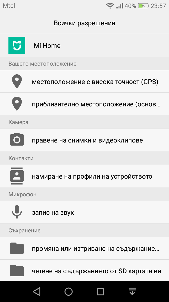 PS. Ето разрешенията които иска Mi Home: