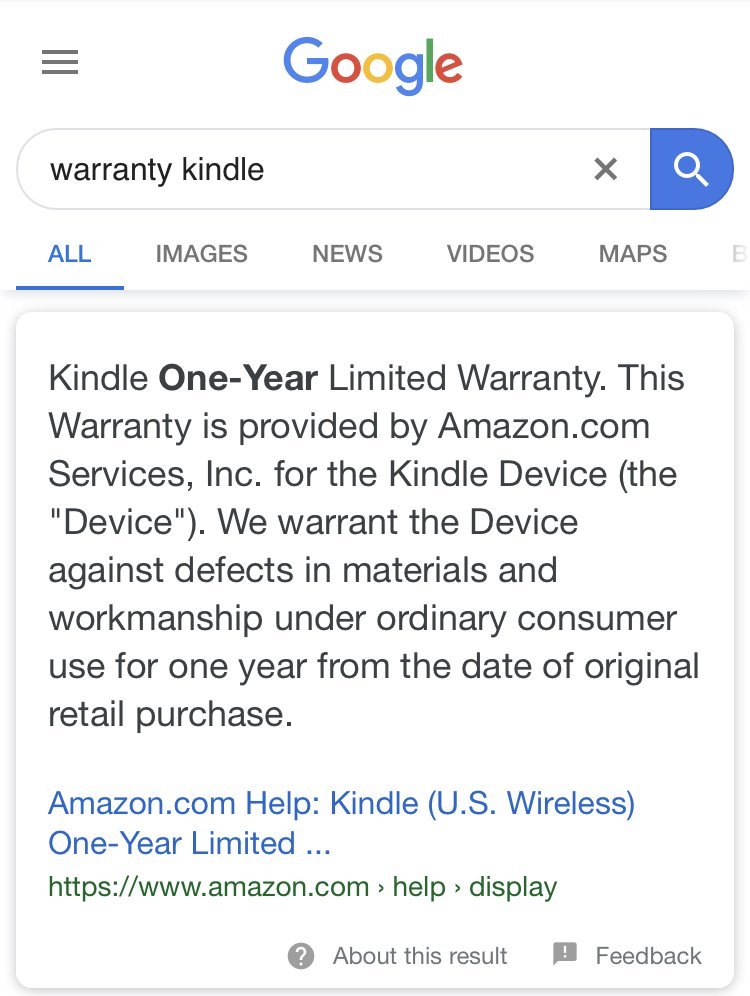Логично или не с гугъл инфо или не , аз купих от OLX кидъл, подарих го след няколко месеца, регистрирахме го в Амазон , след около половин година дефектира, свързахме се със съпорт и ни изпратиха чисто нов!