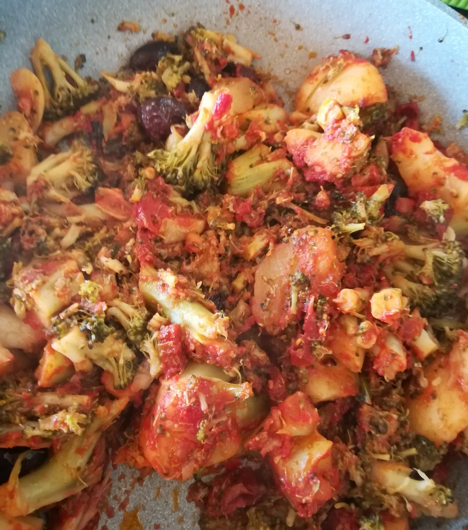Снощи беше паста с печени тиквички и песто калабрезе.