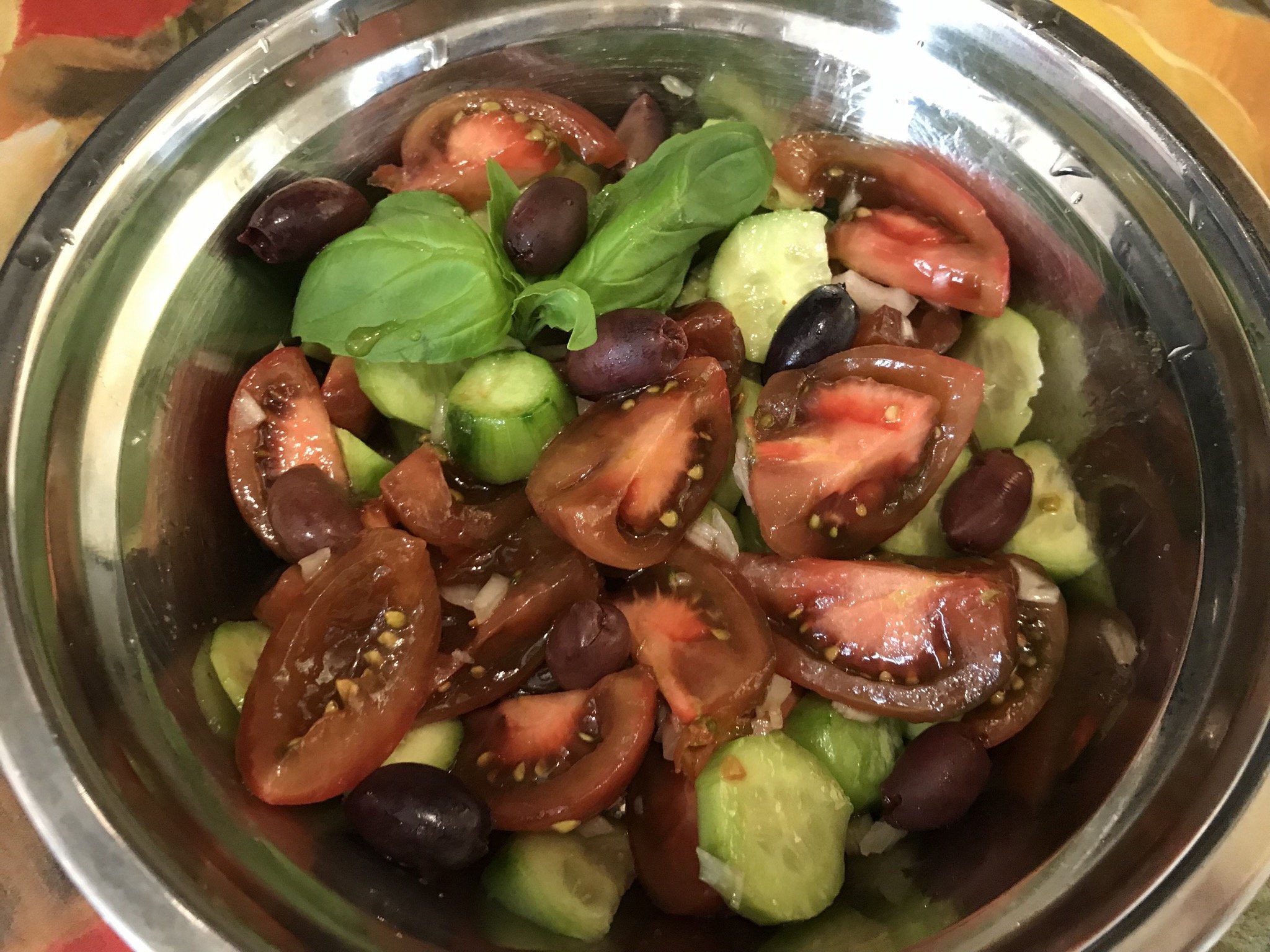 Днес ще е салата от чери домати, краставици и нахут + който каквото намери.
