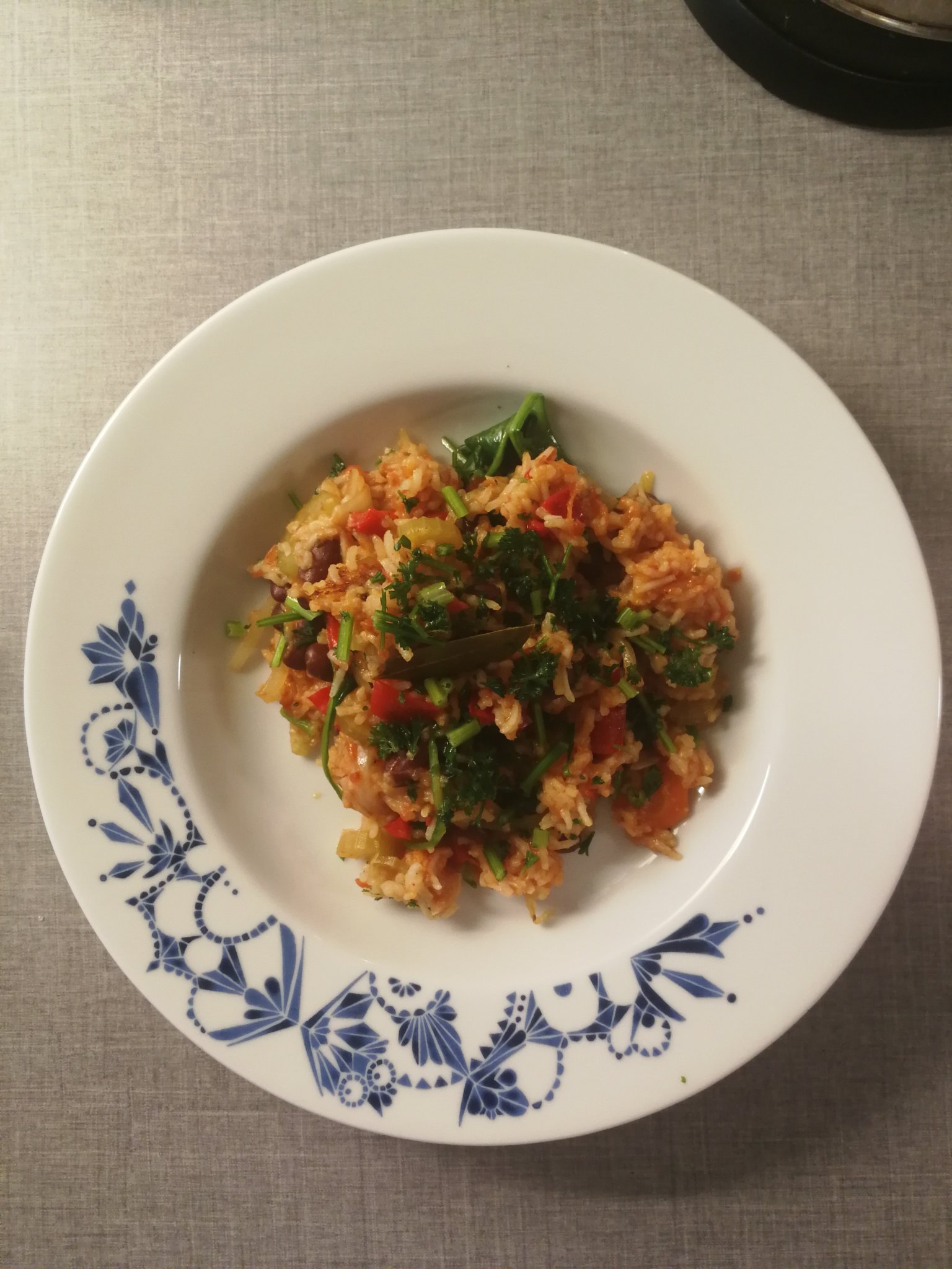 Чушка, лук, чесън, морков, целина, червен боб, домати, ориз.