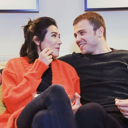 Били са партньори с Айбуке в сериала "Обещание". Не са двойка в живота. Аз много не съм в час със събиранията и  разделите на турските актьори, но за Айбуке и Толга знам, че са партньори от сериала.