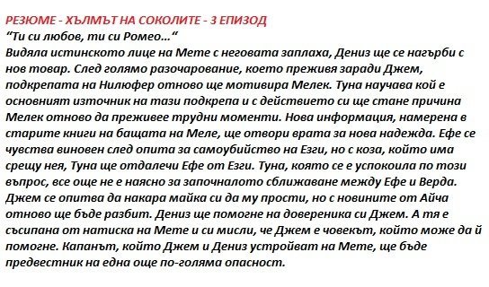 Трети фрагман за еп. 3 на "Хълмът на соколите"