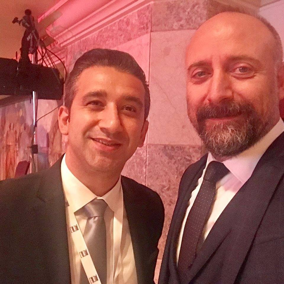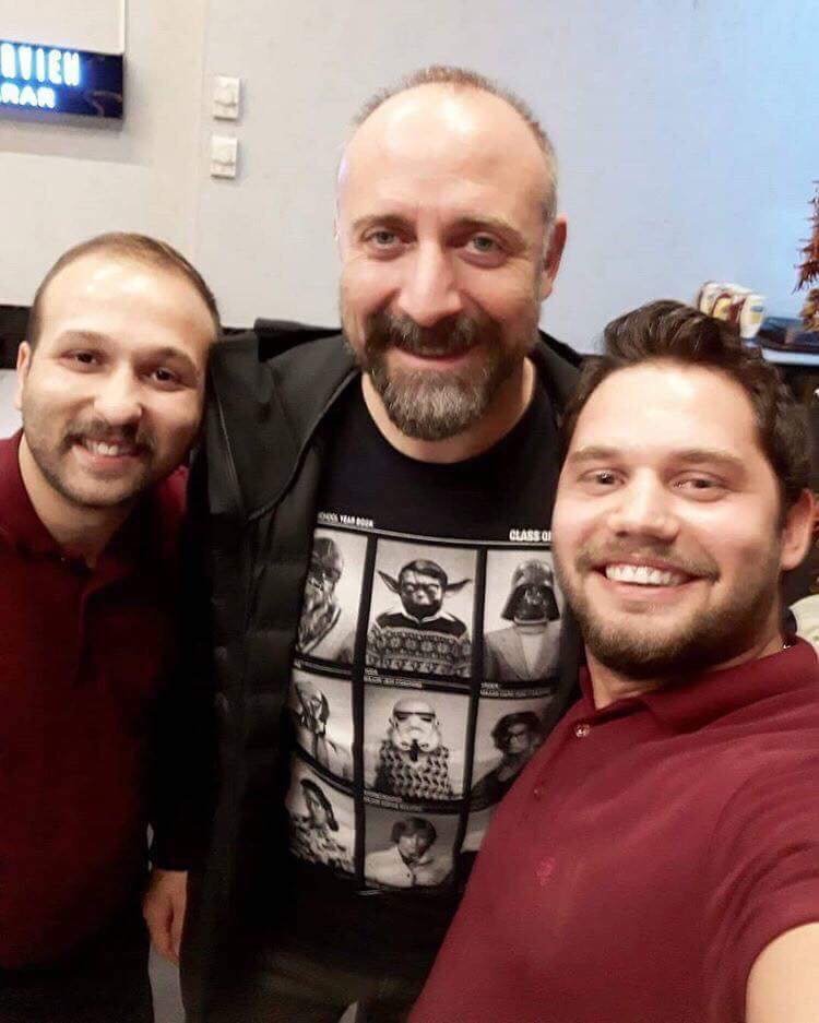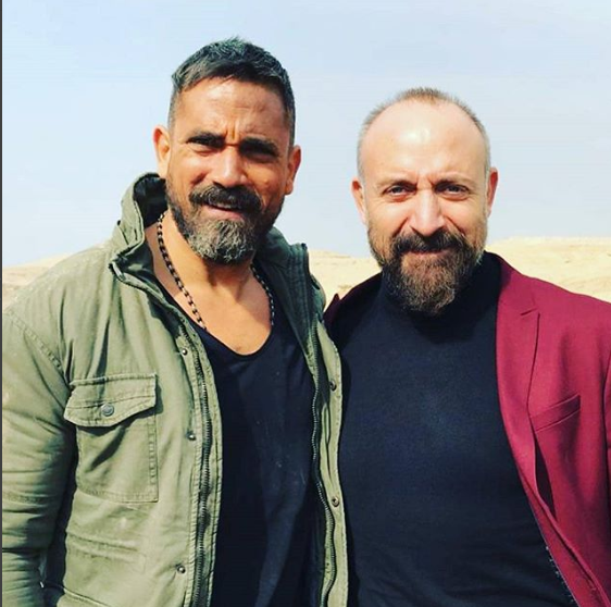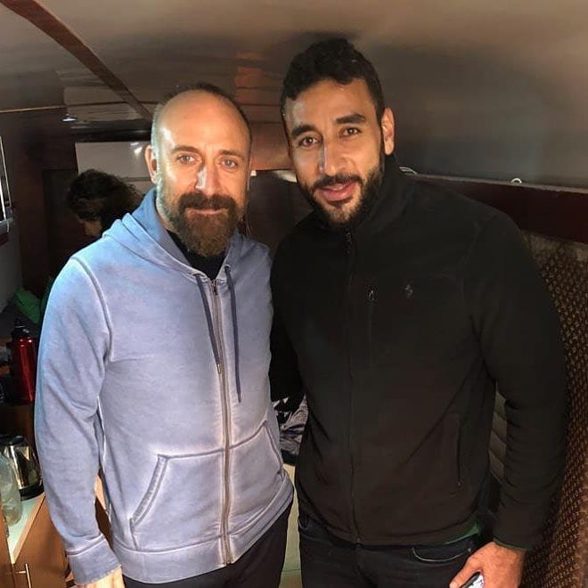 Халит Бей на снимачната площадка със звездата от "Казабланка" Амир Карара, който публикува снимката: