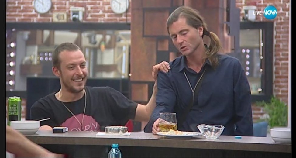 По какъв повод е бил снощният купон? Чак Брадъра музикални желания им изпълнява. Пък и накипрени - Джулка по голи гърди, Благо с бяла риза, Саката с тениска Kiss, а Гъмето опънал официалните чорапи. Smile