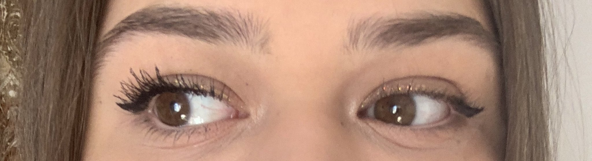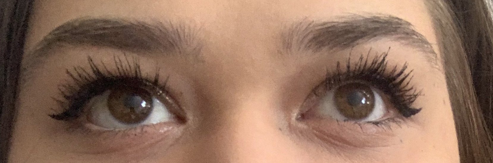 Здравейте, момичета. От около 2 седмици изпробвам спиралата Total Temptation на Maybelline. Харесва ми резултатът, но не ми харесва, че се размазва малко отдолу. Давам ви снимки, за да сравнение. На едното око имам спирала, а на другото само съм си извила миглите с извивачка.
