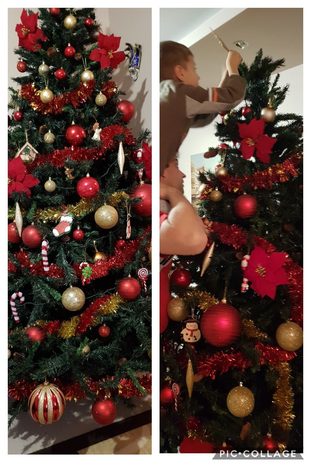 Днес най-накрая и украсихме с бати по-голямата част, докато тати и бебка спяха. Те се включиха накрая за най-важното - поставянето на звездата от горе. Бебка гледа с голям интерес огромното нещо, което "цъфна" в средата на хола, лампичките най-много я грабнаха.