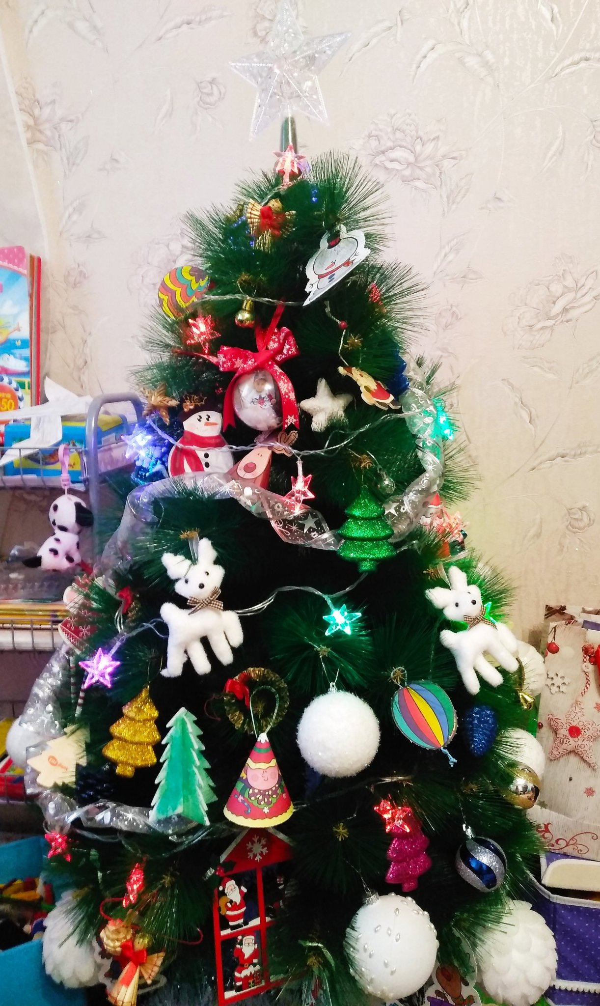 Тази година елхата е мноого шарена.Много от играчките са направени от синът ми,който е на 5г.