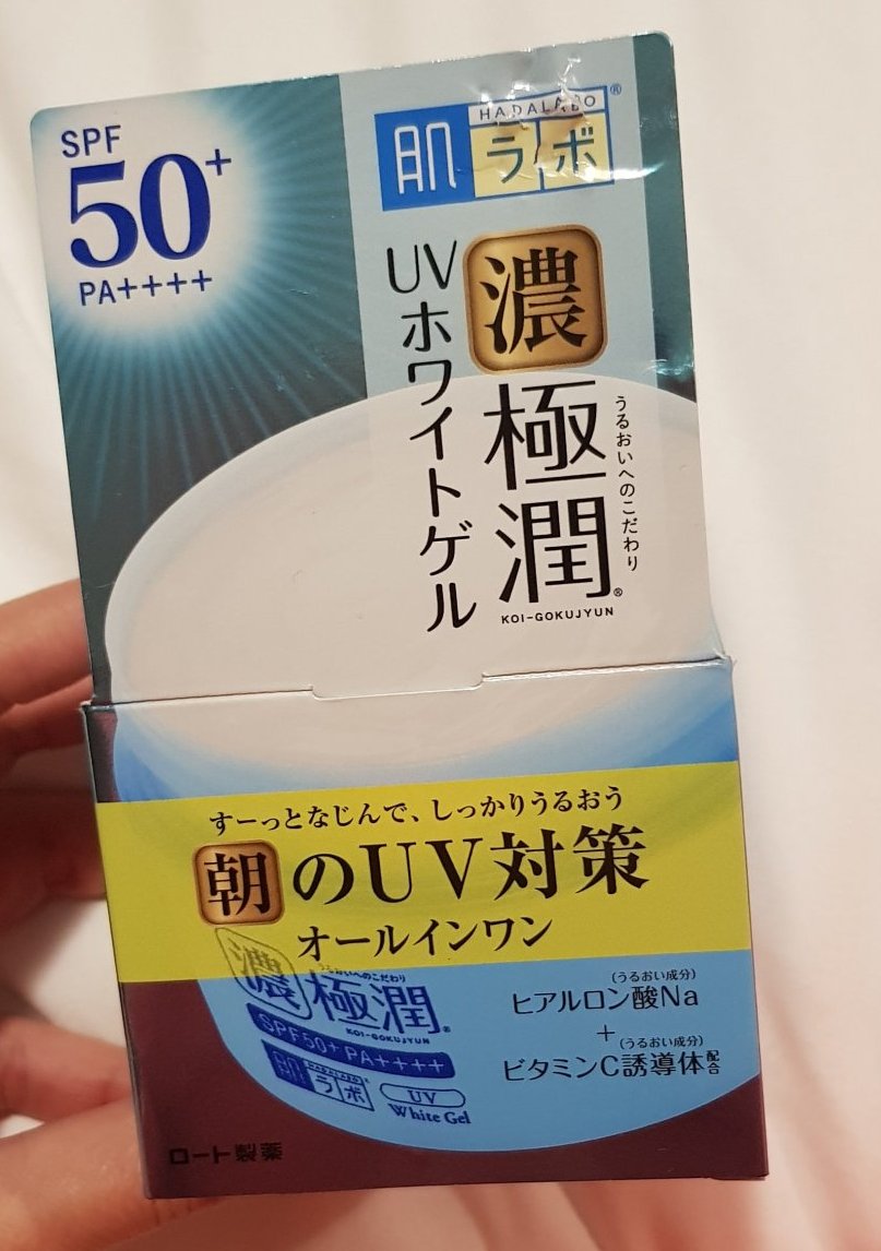 Вчера ми пристигна Rohto Hada Labo White UV gel SPF50+/PA++++. Някой искаше да знае как е. Много е добре да ви кажа! Лек е, като воднист крем, попива моментално почти, не оставя никакви бели следи, овлажнява и на практика не се усеща като да имаш слънцезащитна изобщо. Количеството е огромно, 90гр. Пише, че е едновременно хидратиращ крем  за лице, основа за грим и слънцезащита. И най-хубавото, че няма миризма или почти няма. Усеща се едва доловимо специфичният аромат за spf продуктите.