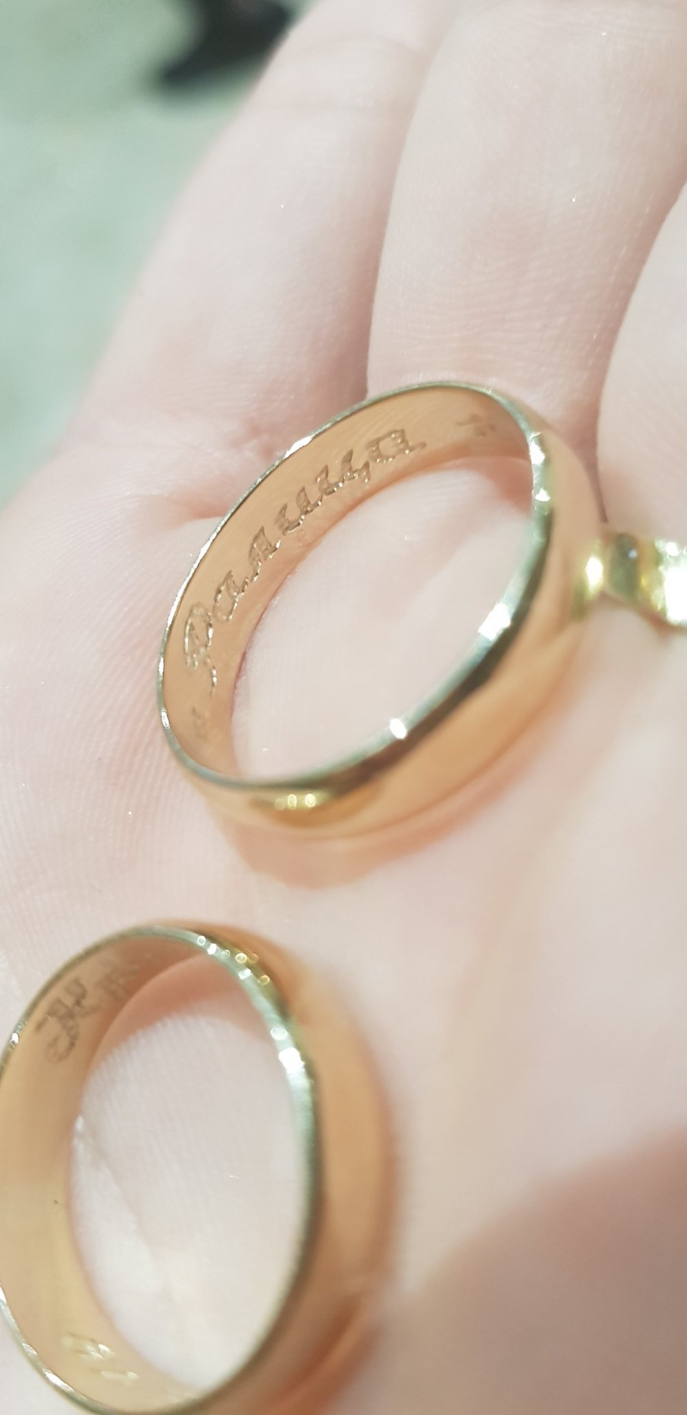 Ние имаме халки,класически, изчистени,гравирани на машина отвътре. Супер доволна съм. 500лв за двете,около 8грама са. 75лв на златото, но ни напарвиха промоция,не знам защо. 😁