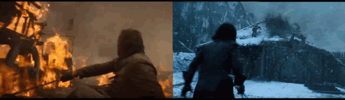 Имаше нещо от рода на Денерис ражда, Бран го убиват под дървото в Зимен хребет, Санса остава с Джендри  в Орлово гнездо и тн.