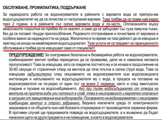 Бойлерът да е изключен от апартаментното табло и водата да не е загрята повече от 40°C!!!