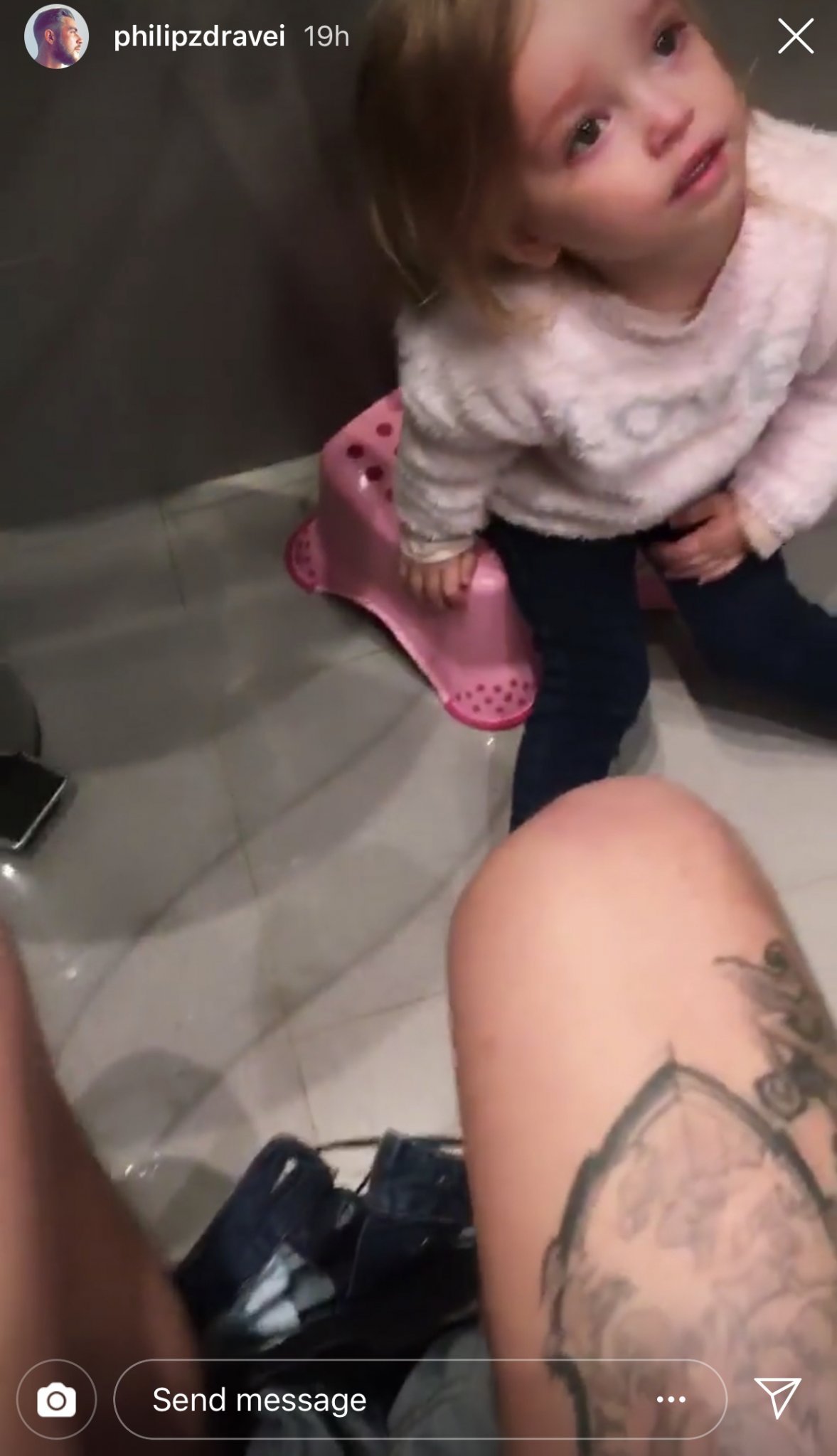 ужас... как може такива снимки да изтипосват??? не е тайна че родител на 2г дете трудно отива в тоалетната без компания, ама хайде няма нужда да го слагаме и на инстаграм...