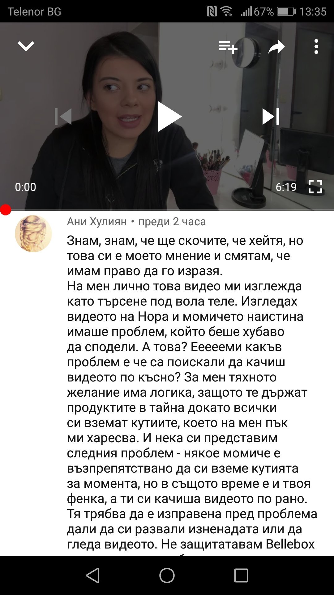 За Бел Бокса - усетиха се, че им се пращат ментета или разни тестери с изтекъл срок. Пресентират им кутия с продукти на цена 100-200лв, а абонамента бил 25лв. Сагата е, че не стига безплатната реклама, която тези момичета правят, от Бел Бокс им налагат правила кога да отварят кутиите си.