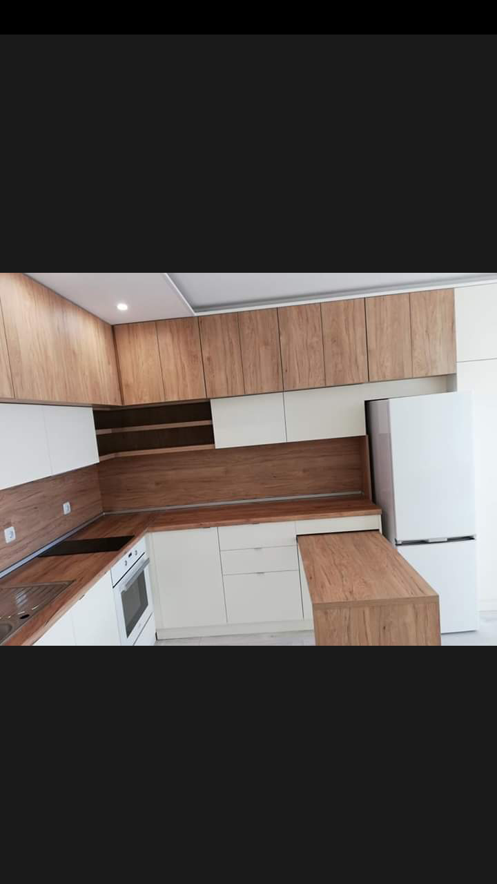 Асмегин отговори и на двата ми въпроса. Мисля, че си затвърждавам това което си мислех. Първоначално си мислех за бял гланц и долу и горе, но се замислих че може да е непрактично и сме и с малко дете. Тъй като цветовете съм ги избрала и не искам да сменям, плота държа да е едно дървесно, следва да направя долните като плота, за да си запазя цветовата комбинация. Така ,че това ми е идеята, след като не е толкова странно плот като долни шкафове, значи съм на прав път. Онзи ден избрах и гърба и си казах това е.