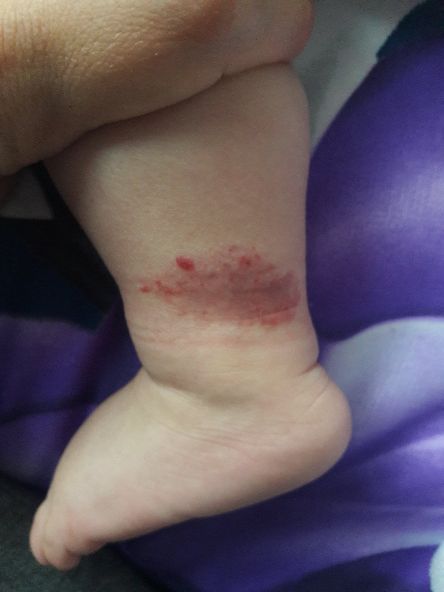 Това петно прилича на хемангиом. Не би трябвало да е проблем, но го обсъди с педиатъра все пак.