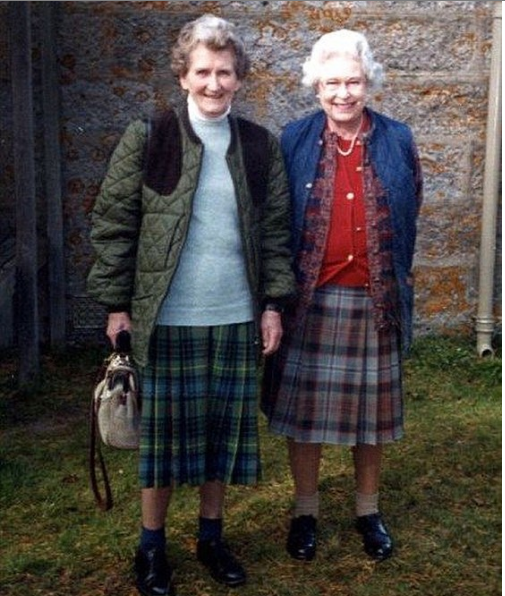 Не е. Това е снимка с първата й братовчедка, Маргарет Елфинстън, дъщеря на по-голямата сестра на кралицата-майка. Двете са с една година разлика и са били доста близки. Някъде през 2010 излезе нейна книга за живота на кралското семейство.