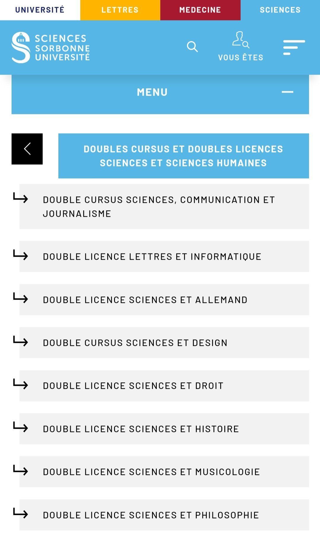 Отдавна не съм търсила и следила специалности, но имаше някъде нещо подобно на либерал артс, но.... търсете.  Не знам дали в търсенето не е по-добре да се гледа направо в платформата, а не отделно във всеки университет - мисля че ще е по-бързо да се ориентирате в кои университети има желаните специалности, ако не сте се насочили точно към Париж и точно към Сорбона. Имайте предвид и че има ограничения в броя на университетите, в които може да се кандидатства за определен район.