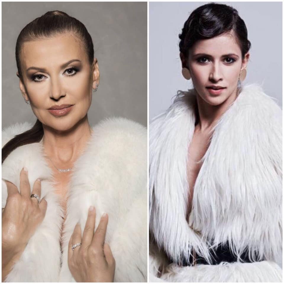 И коментар към колажа:Преди около два месеца, в един и същи ден, по едно и също време, на две различни места я София, две непознати една на друга дами решиха да ни облекат еднакво с Неви и да ни направят фотосесии, които нямат общо помежду си😂😂