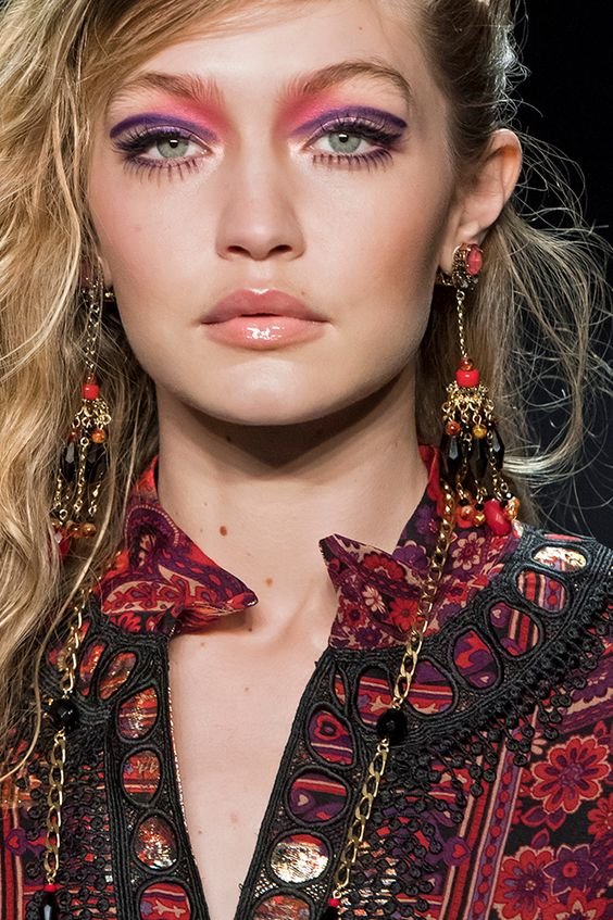 Приближени очи - всяко око е позиционирано непропорционално близо до основата на носа. Най-светлия ни цвят се слага в началото на окото, както отгоре така и отдолу, за да изпъкне и уголеми зоната. Цвета за основа започва от около средата на клепача, а извивката с тъмно  се изтегля максимално към слепоочията.