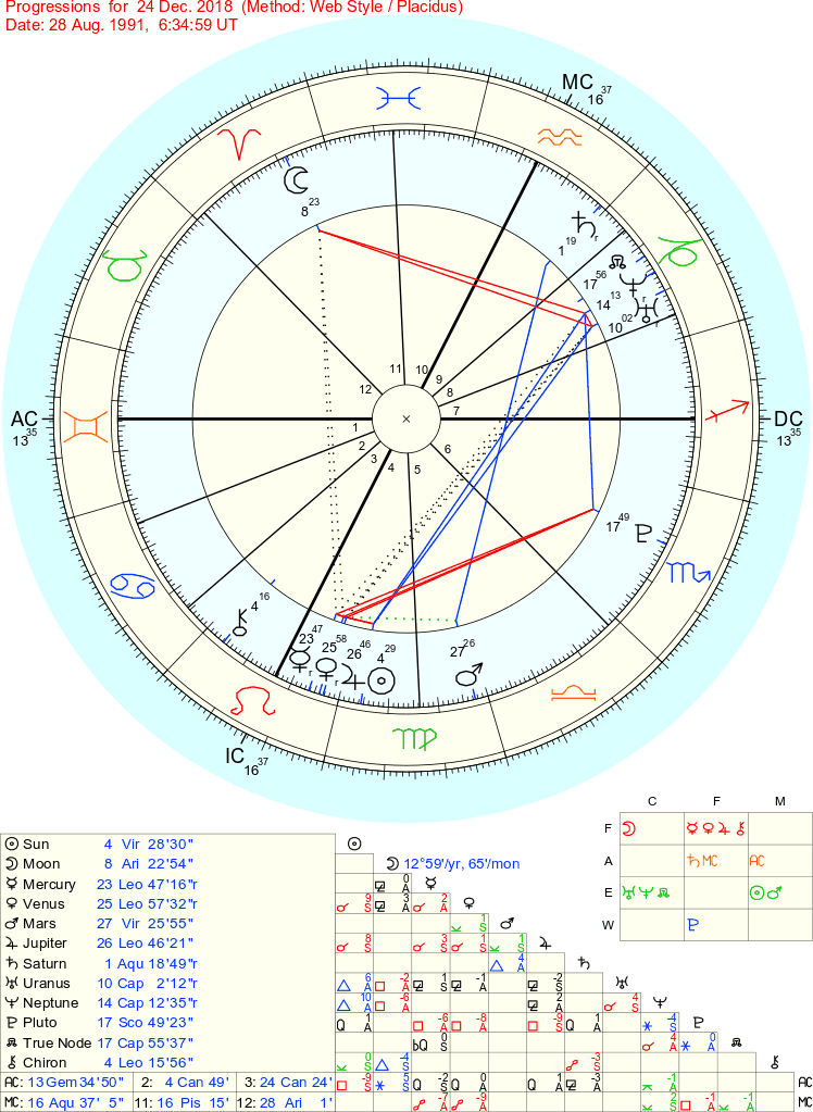 Сатурн пре МЦ - може нова работа да ти донесе, но с трудности всичко ще става, и на самата работа също. Все пак ще е кариера. Сатурн е свързан с усилието, постоянството, отговорността. Ти сигурно вече го усещаш в 9 дом, който ти  натоварен (висше образование, чужди езици, чужбина)