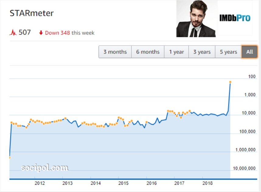 Графиката на популярността на Ча в  IMDB през годините- сравнително стабилна с известен спад - вижда се в кои години и какъв скок наскоро Crazy