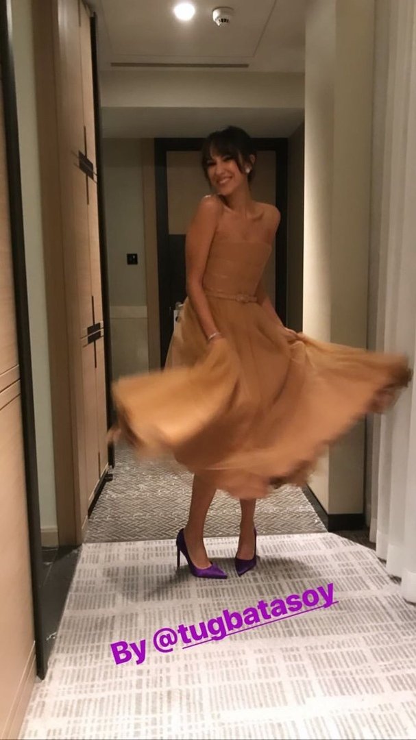 Дуда изглежда много добре, само цвета на роклята е един никакъв и се слива с тъмния и тен.