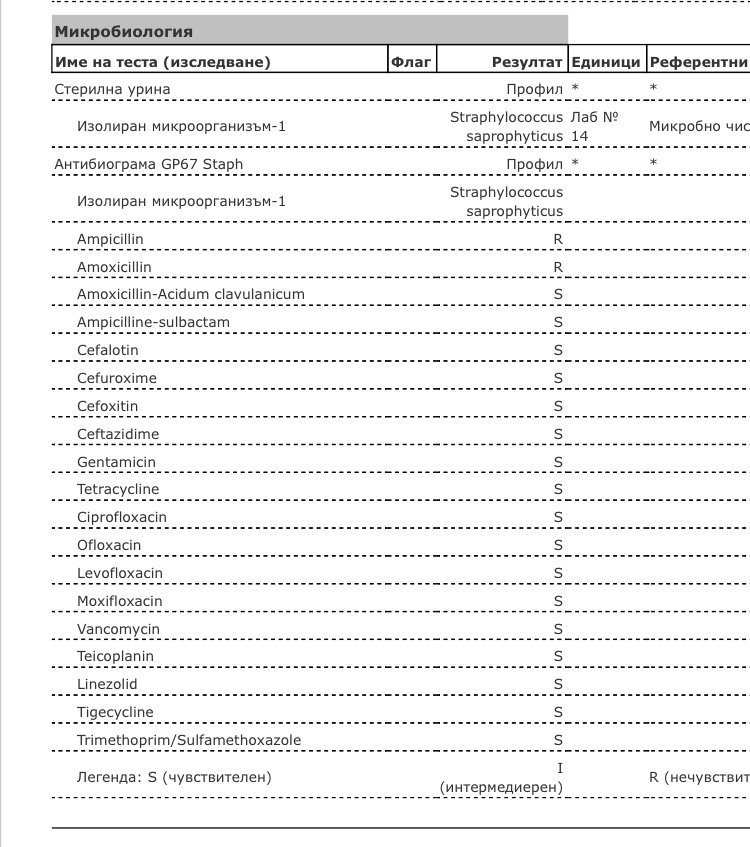 След болки в бъбреците и оплаквания като при цистит, пуснах обикновена и стерилна урина. Личния лекар ми даде антибиотик, защото в обикновената излезе белтък. Днес излезна и стерилната и пише, че имам staphylococcus saprophyticus. Според вас да ходя ли отново на лекар, или след като пия антибиотика няма нужда. Стафилококите ще минат ли от него или трябва специално лечение? Оплакванията ми изчезнаха вече, но още ме болят леко кръста и бъбреците.
