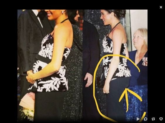 Чудно ми е защо не се коментира как е изритало бебето, нали все гледат корема. Тука има, тука няма. Има хора, които до толкова издребняват, че чак стават смешни. Примери с акценти много, като например висящ конец от рокля, изтъркани подметки , етикет, бельото да се вижда. Тук не говоря само за Мегън или за която и да било кралска особа.