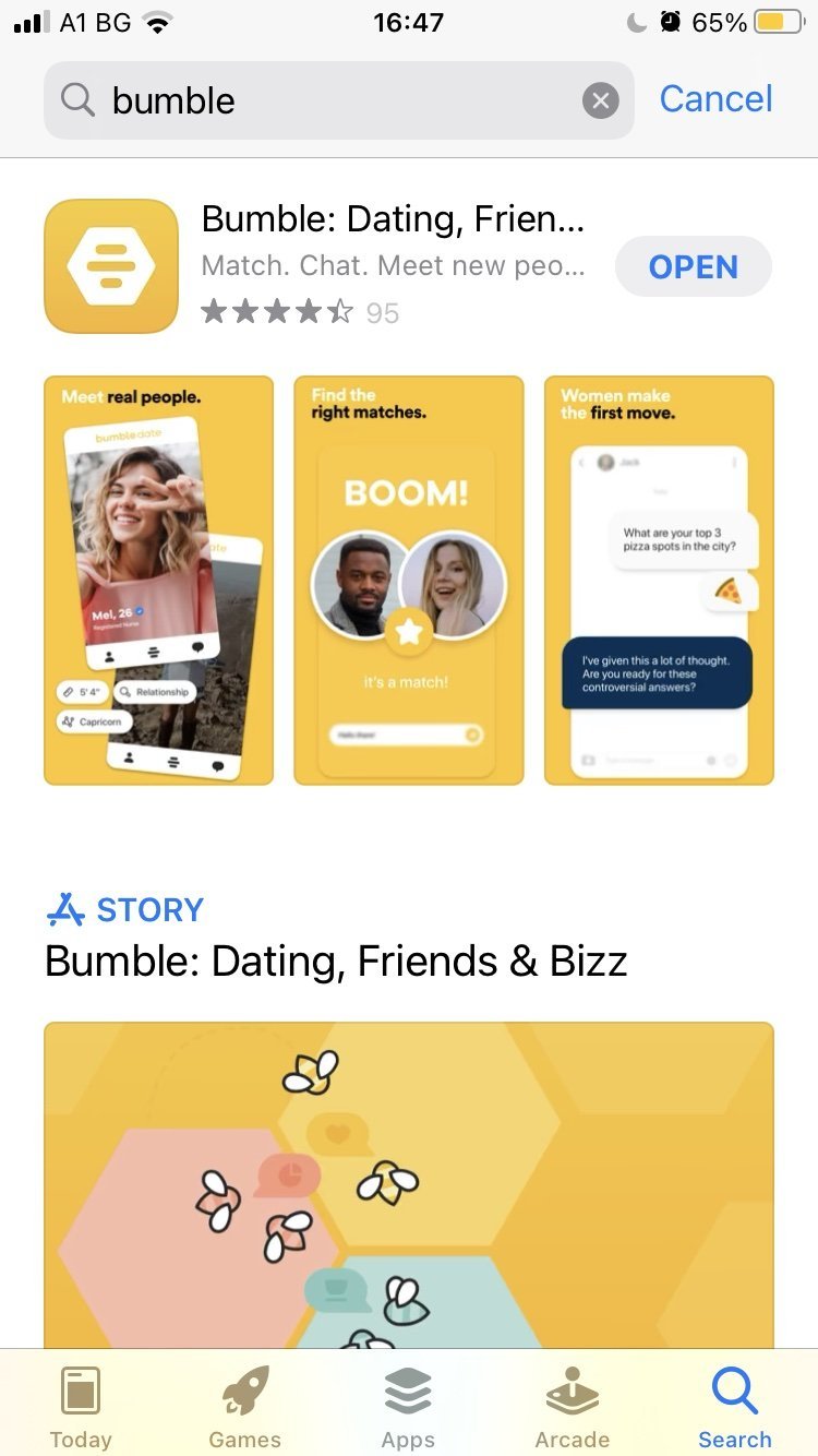 Гледам тук споменавате Bumble. После се сетих, че една моя бивша колежка, която е живяла в Щатите, ми беше казала за него. И хайде и аз там.