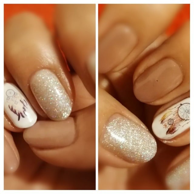 лаковете са на GD Coco, като под брокатения (номер 824) е един слой 810.