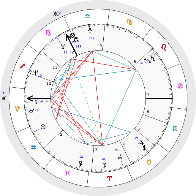 При един бърз поглед от астролог чух фразата "много интересна карта". Но понеже темата на разговор беше друга, не успях да задам въпросите, които ми изникнаха в главата. Днес започнах да разглеждам... Има ли тук голям тригон и тау квадрат? Картата не е моя, а на приятел, който ми е много сложен за разбиране. Кажете, моля, какво мислите вие.