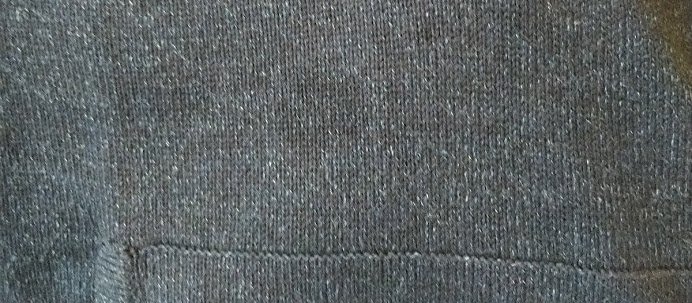 Много ясно се вижда на живо, опитвам се да го разгадая, щото не е мръсно...пуловерът е от различни по цвят нишки и явно там машината е решила да сложи само черно...супер грозно стои точно като петно..
