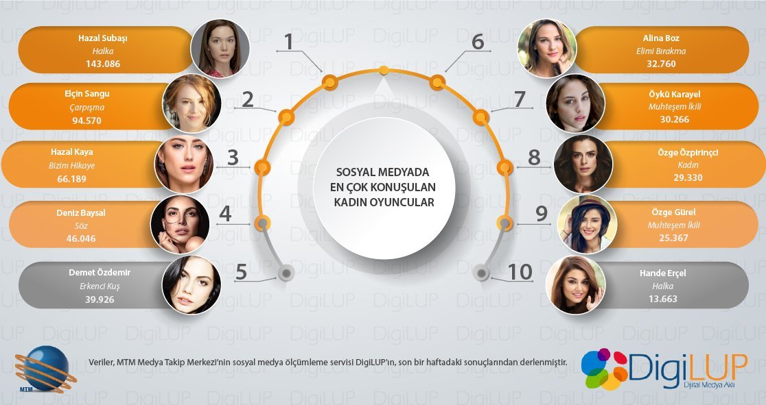 Първо новината, която вече става и традиция  Wink - Хазал отново е първа сред 10-те най-обсъждани в соц мрежите актриси за изтеклата седмица.