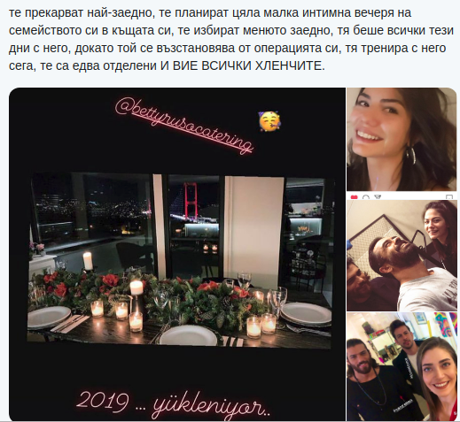 alex 😂😂 ,  в ТТ международните фенки нареждат всеки който се съмнява във връзката на Д и Д,  и който вярва на турските медии. Направо имам чувството, че са като кучета пазачи на двойката. Ядосват се като ги тагват постоянно на всяка срещната снимка (като онази с отраженията на стъклото ), защото това карало Джан и Демет да не се покажат скоро като двойка. А и всички са сигурни, че са такава. Ти, разбира се знаеш всичко това де. 🙃