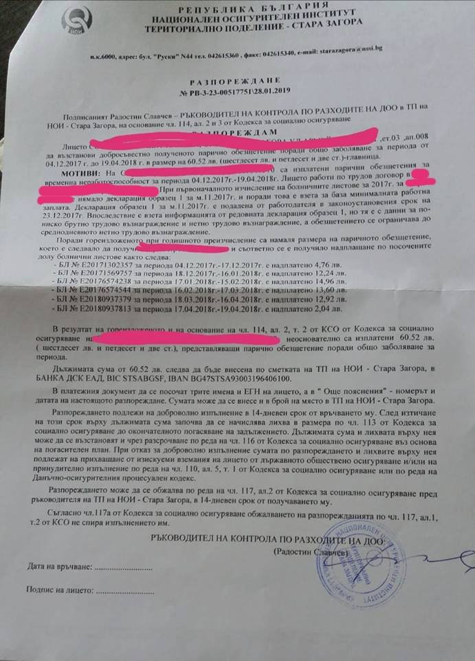 Момичета, изпаднах в безумен казус. Днес получих следното писмо от НОИ: