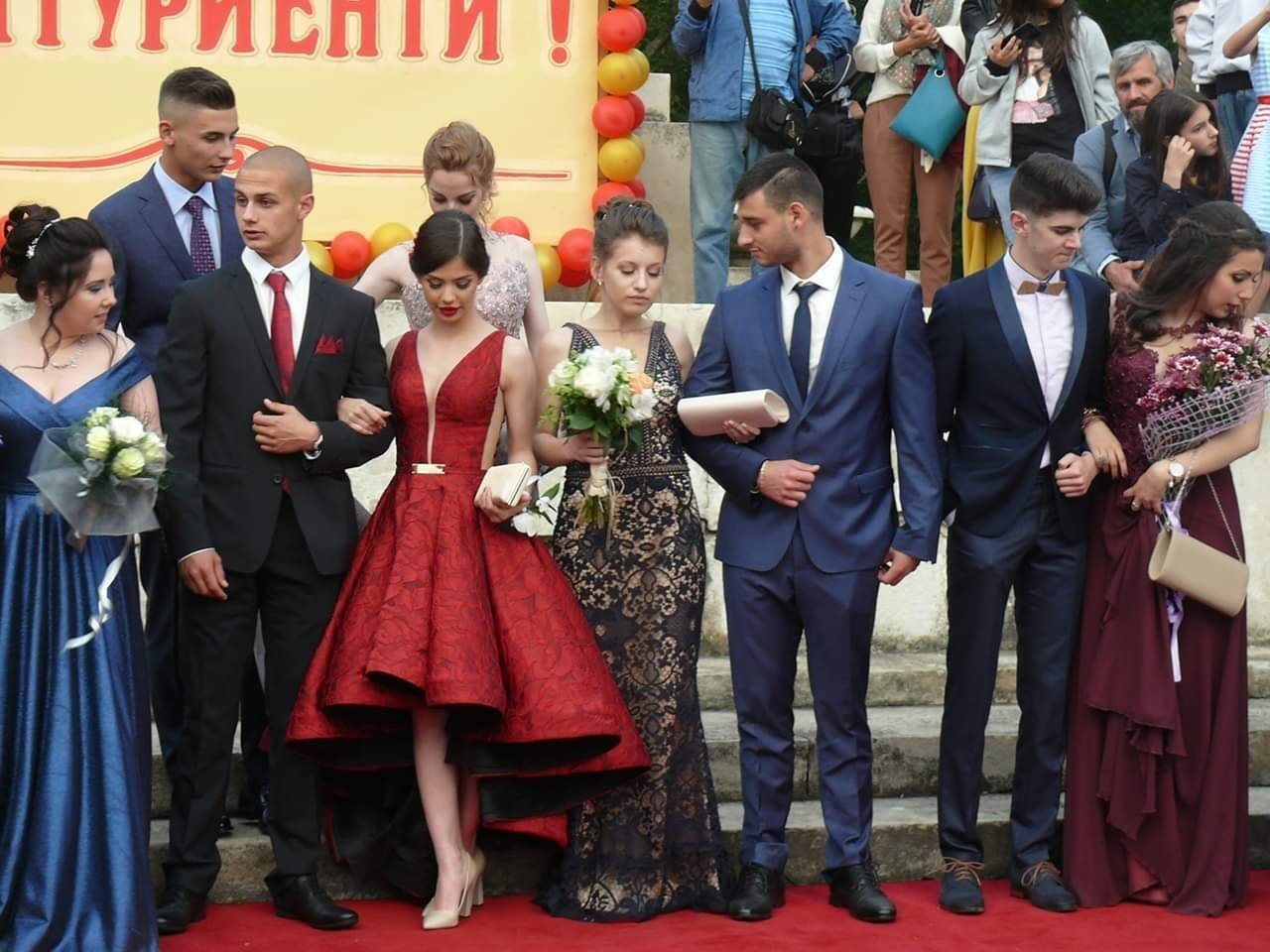 Страхотни са, но ако позволят един съвет бъдещите абитуриентки- моля, не носете букети, не сте булки и ще ви пречат. Достатъчно е да имате клъч в ръцете, за да не се чудите какво да ги правите. Чанта и букет е много. Ето и тази снимка е доказателство