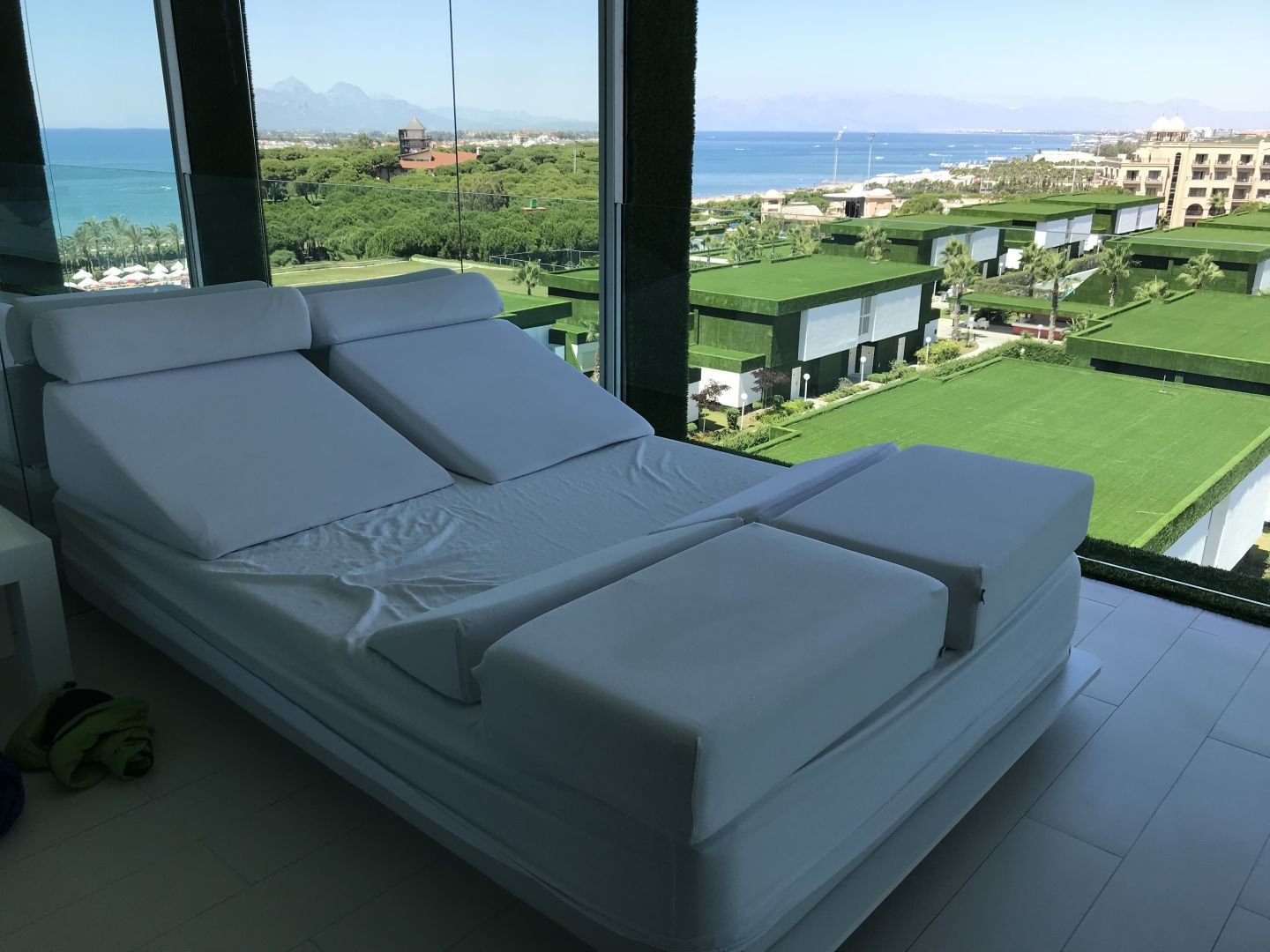Много басейни на няколко нива, за всеки по нещо, 2 големи основни, единия с анимация, единия с разни водни игри, много шезлонги, един релакс инфинити басейн където не се допускат деца с невероятна гледка (те всички са са с уникална гледка), много пързалки, детска част отделена.