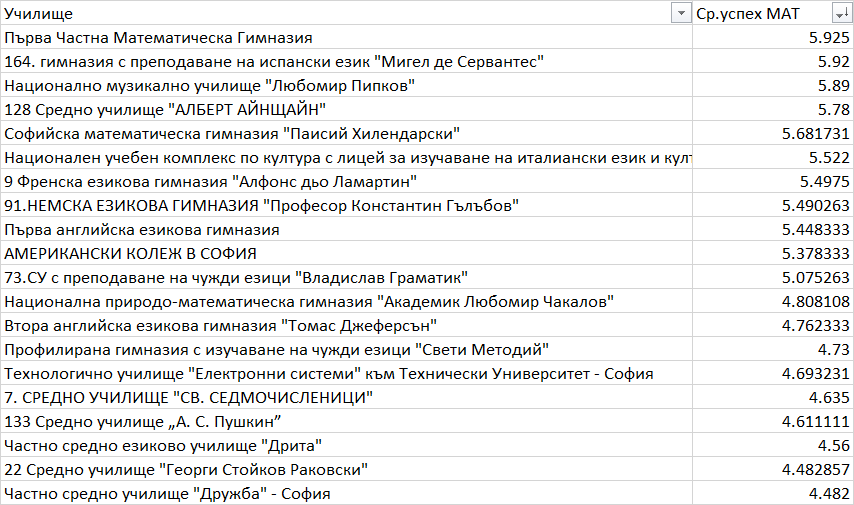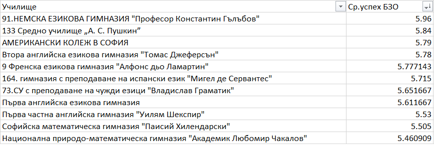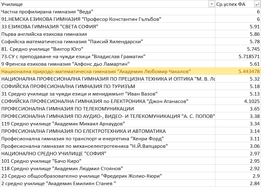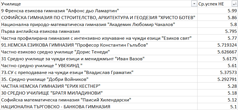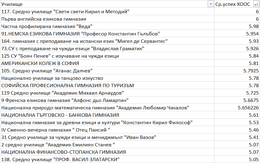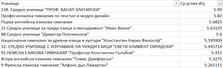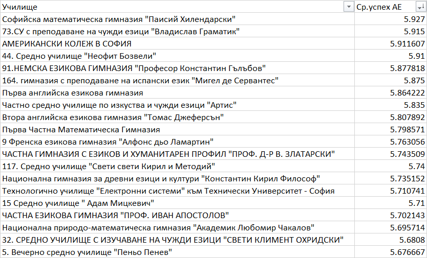 . Основата от знания в училището не е съвсем посредствена, но все пак е поне 2 оценки под максимума. Което показва, че това училище не успява да уползотвори на максимум този материал.