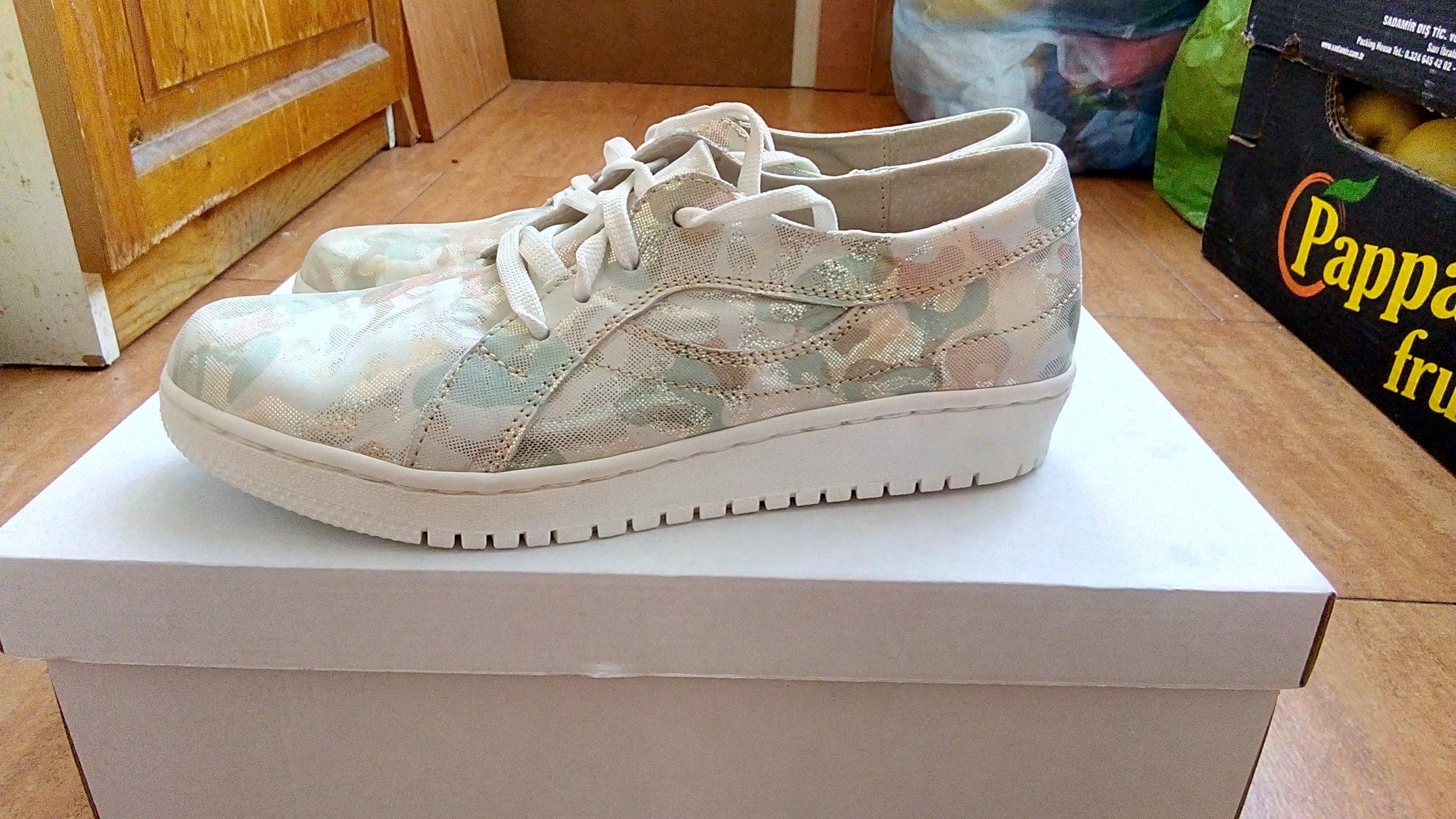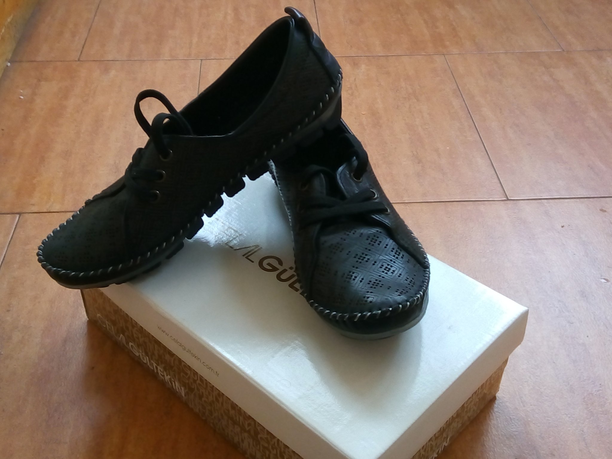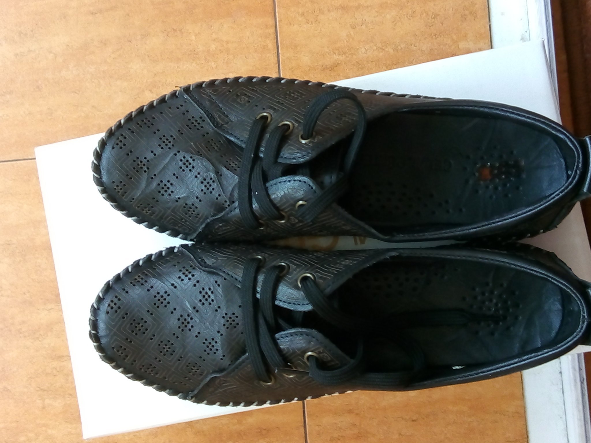 Дамски мокасини естествена кожа отвън и отвътре, 39 номер, но са умалени с един размер и отговарят на 38. Дължината на стелката е 24.5 см. Обувките са с олекотено, ортопедично ходило и са много удобни и красиви. За съжаление на мен се оказаха малки.