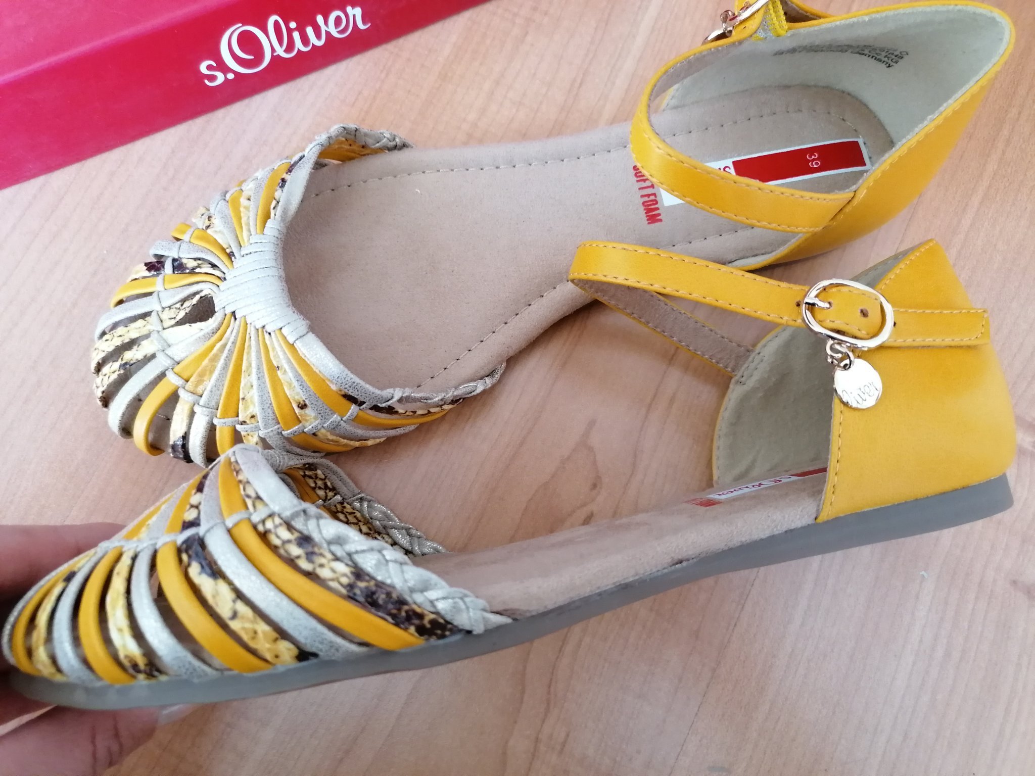 Дамски жълти сандали s. Oliver, размер 39. Дължина на стелката 25 см. Ортопедични. Изкуствена кожа. Цена: 45 лв.